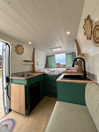 Véhicule pensé pour un randonneur vadrouilleur, prêt à parcourir l’Europe au gré des routes et des sentiers. Un espace épuré, conçu pour respirer, laisser entrer la lumière et offrir un volume visuel maximal. Ici, chaque détail invite au mouvement, à la simplicité et à l’aventure, entre bivouacs sauvages, cols montagneux et horizons ouverts.