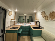 Aménagement grand confort, aux normes AFNOR, l’équipement entier est neuf, sous garantie et de grande qualité. Conçu pour une autonomie électrique totale, même en hiver. Homologué VASP, carte grise auto-caravane.